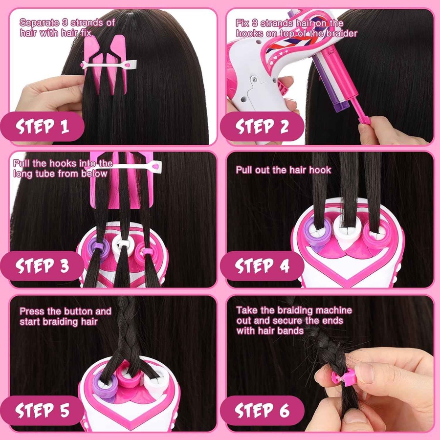 جهاز تضفير الشعر السحري للأطفال، بيخلي البنات يعملوا تسريحات شعر مختلفة بسهولة وسرعة. شغّليه، دخلي الشعر، وهو هيعمل الضفيرة لوحده! شكله شيك وألوانه مبهجة ومناسب جدًا كهداية للبنوتات. مواصفات الجهاز: تصميم جذاب باللونين الأبيض والوردي. بيشتغل تلقائي لتضفير الشعر. خفيف وسهل الاستخدام للأطفال. آمن على شعر الأطفال ومناسب لكل أنواع الشعر. مميزات المنتج: بيساعد الأطفال يطوروا مهاراتهم في التسريح. تسريحات متنوعة في ثواني. ممتع جدًا ومش بيحتاج مساعدة كبيرة من الكبار. يشجع البنات على الابتكار والاهتمام بنفسهم. محتويات العبوة: جهاز تضفير الشعر. مشط بلاستيك لتمشيط الشعر. أدوات لف وتثبيت الشعر. إكسسوارات شعر (توكا – بنس – توك صغيرة). استيكرات أو خرزات للتزيين. قطع بلاستيك للمساعدة في التقسيم أو التثبيت.